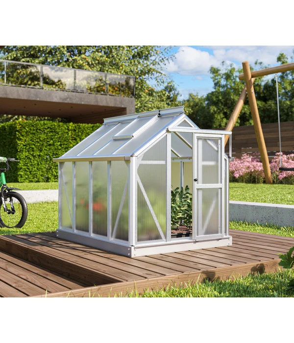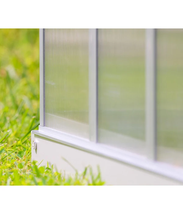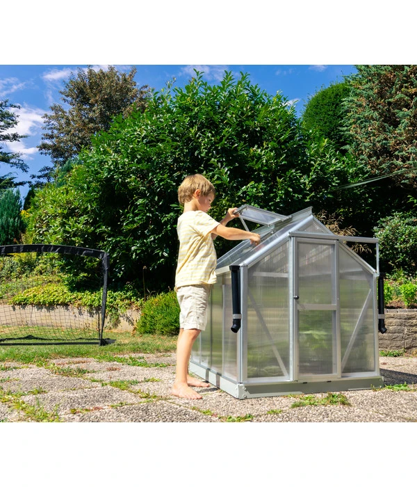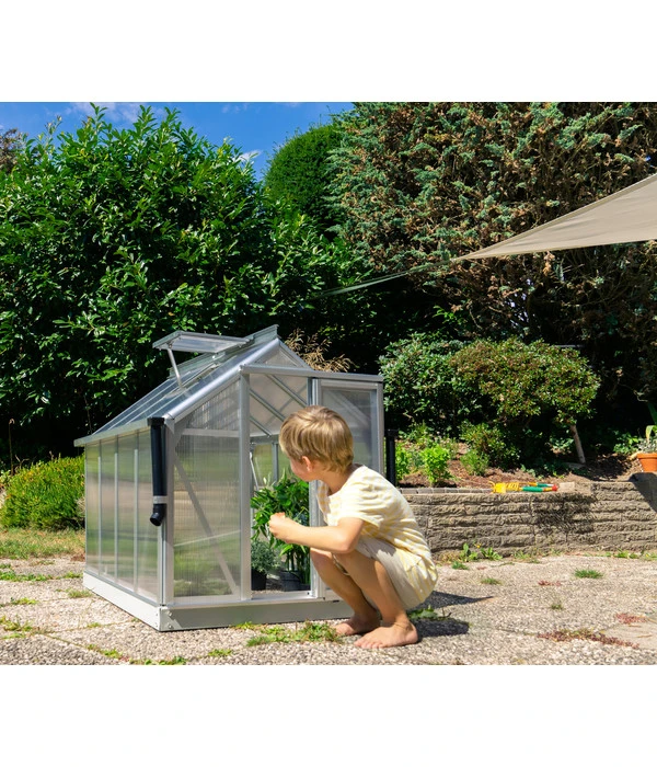 Das Minigewächshaus Merlin orientiert sich nicht nur optisch am Original Pollux, sondern verfügt auch über viele seiner tollen Eigenschaften wie die UV-beschichteten Hohlkammerplatten mit isolierender Wirkung. So können Sie es tatsächlich nutzen, um darin Pflanzen zu ziehen. Da das Häuschen keinen Boden und ein geringes Gewicht aufweist, lässt es sich zudem als großes und stabiles Frühbeet verwenden und schützt Ihre empfindlichen Gewächse vor Witterungseinflüssen. Nicht zuletzt weckt das Modell die Lust am Gewächshausgärtnern bei Groß und Klein, wobei es natürlich kein Spielzeug ist und von Kindern nicht betreten werden darf. Greifen Sie zu und freuen Sie sich auf diese Zierde mit echtem Mehrwert!