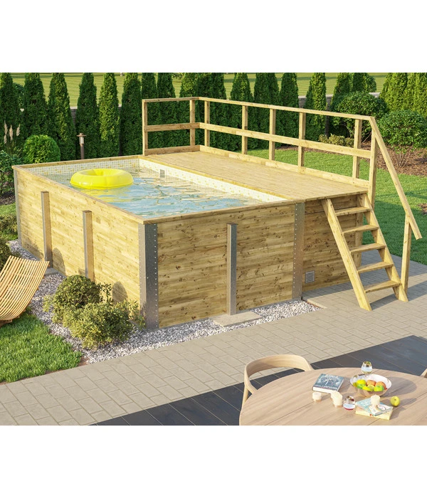 Freuen Sie sich auf wundervolle Wochenenden, an denen Sie mit Ihren Kindern bzw. Enkeln im kühlen Nass planschen – das wird immer wieder aufs Neue ein Riesenspaß. Vielleicht möchten Sie auch als Pärchen den Sommer von seiner schönsten Seite genießen und gönnen sich fortan ein schönes Bier oder einen tropischen Cocktail, während Sie im Wasser oder auf dem Sonnendeck die Seele baumeln lassen. Ihr neuer Weka Massivholzpool 595 wird inklusive Sandfilteranlage und einer ausführlichen Montageanleitung geliefert, so dass Sie ihn problemlos selbst aufbauen können. Greifen Sie zu!