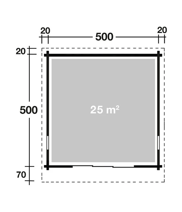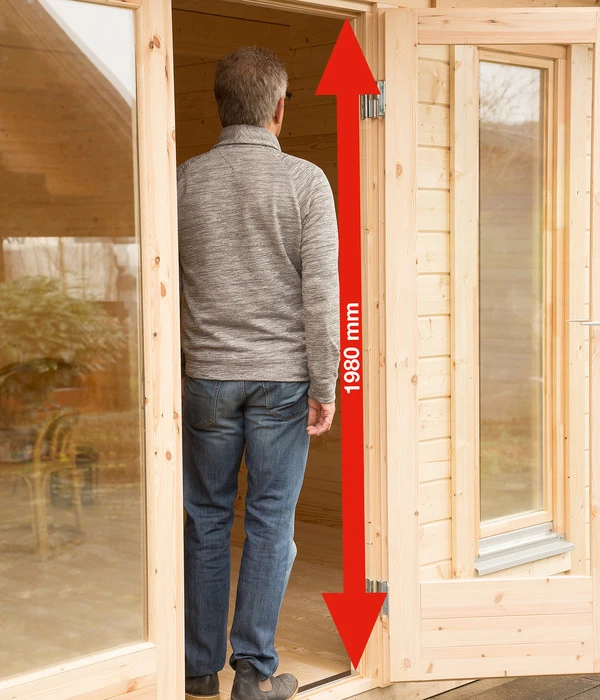 70 mm Wandstärke, Isolierverglasung, extra hohe Tür & Wände