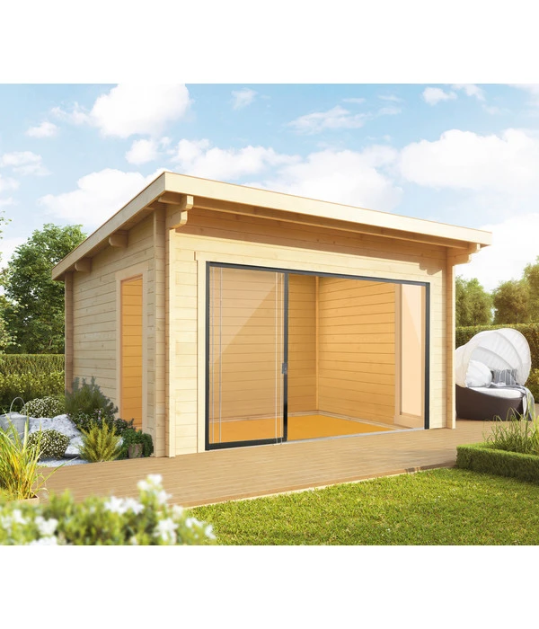 Was ist typisch für die Holzhäuser im hohen Norden? Die gemütliche Ausstrahlung, für die in erster Linie das viele Holz verantwortlich ist, aus dem die Häuser errichtet werden. Große Wohnhäuser wie auch die typischen Lauben, die auf den Schäreninseln oder auf einsamen Naturgrundstücken stehen. Inspiriert von diesem einzigartigen Flair, aber mit einem modernen Touch ist das Wolff Finnhaus Gartenhaus Trondheim 70-G XL inkl. Schiebetür links entstanden. Mit dem Pultdach und den vielen bodentiefen Glaselementen wirkt es hell und offen, während das Holz für die einladende Note sorgt. Eine Einladung, der alle gerne nachkommen werden: Sie und Ihre Familie, Ihre Freunde und Nachbarn. Und nicht nur im Sommer, sondern auch in der kühleren Jahreszeit, denn das Haus hat Wandbohlen aus Nordischer Fichte mit einer Stärke von 70 mm. Genießen Sie bald Urlaubsfeeling wie im hohen Norden – mit dem Wolff Finnhaus Gartenhaus Trondheim 70-G XL inkl. Schiebetür links!