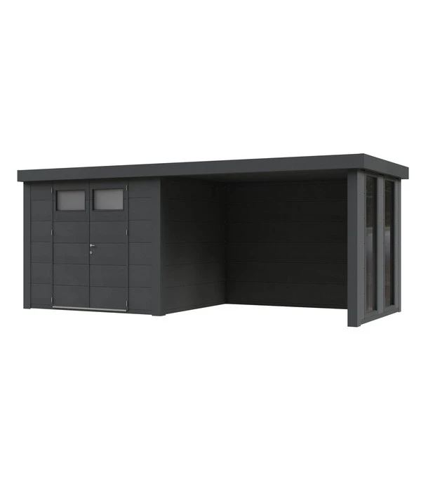Im eigenen Garten loungen wie im Wellness-Ressort – Sie finden das klingt zu schön, um wahr zu sein? Ist es aber nicht. Denn mit diesem Wolff Finnhaus Metallgerätehaus Eleganto 2724 bekommen Sie genau das und ein Premium-Gerätehaus noch dazu. Dabei verwöhnen beide Gebäudeteile mit einem ganzen Strauß an Vorzügen. Der Lounge-Bereich dient als stylischer Ruhebereich, den Sie nach Ihren Vorstellungen mit Liegen oder einer gemütlichen Sitzgruppe einrichten können und der Ihnen Schutz vor Sonne, Regen und Wind bietet. Gleichzeitig gewährt er dank der eindrucksvollen, bodentiefen Fenster wunderschöne Ausblicke in Ihren Garten. Ein traumhafter Ort zum Entspannen! Der Gerätehausteil erleichtert mit einer breiten Doppeltür den Transport sperriger Gartenutensilien, Fahrrädern oder Gartenmöbel. Die Tür ist mit einem professionellen Zylinderschloss ausgestattet, sodass Sie Geräte und Co gut vor unbefugtem Zugriff bewahren können. Und natürlich sind beide Teile bestens durch das isolierte Flachdach geschützt. Sie sollten beim Wolff Finnhaus Metallgerätehaus Eleganto 2724 inklusive Lounge rechts mit Fenstern einfach zugreifen!