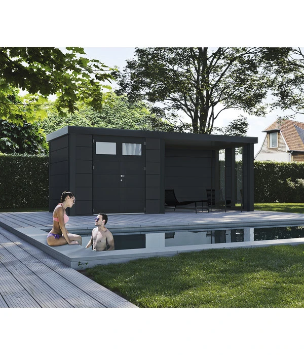Wer wie Sie gerne in einer schönen Umgebung entspannen möchte, legt nicht nur Wert auf funktionale Aspekte, sondern auch auf die entsprechende Optik. Ein Anspruch, den das Wolff Finnhaus Metallgerätehaus Eleganto 2724 mit seinem modernen, geradlinigen Design mehr als erfüllt. Werfen Sie nur einen Blick auf die kubische Bauweise, das massiv wirkende Flachdach, die eleganten Fenster und die perfekt integrierte Doppeltür. Dieses Gartenbauwerk wird Ihren Garten mit einem völlig neuen Flair erfüllen!