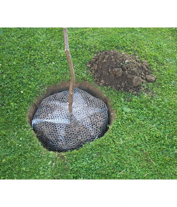 Starke Wurzeln sind das A und O für ein gesundes Wachstum und die nötige Stabilität Ihrer Pflanzen. Daher ist es wichtig, für einen zuverlässigen Schutz gegen Wühlmäuse zu sorgen und Wurzelverbiss zu verhindern. Der Einsatz des Korbes ist ganz einfach. Wenn Sie beispielsweise einen jungen Baum einpflanzen möchten, heben Sie wie gewohnt ein Loch im entsprechenden Durchmesser aus. In dieses stellen Sie den Schutzkorb, der seitlich und unten durch einen Doppelfalz geschlossen ist, und füllen ihn mit etwas Erde. Anschließend setzen Sie den Wurzelballen hinein und geben weitere Erde dazu. Zuletzt schließen Sie den Korb, sodass die Wurzeln rundum vom Drahtgeflecht umhüllt sind. Das dünne Sechskantdrahtgeflecht besteht aus verzinktem Material, das in den ersten Jahren sicher schützt und sich anschließend zersetzt. Greifen Sie zu und bestellen Sie den Wühlmauskorb!